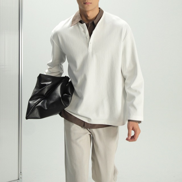 朝の光が壁に溶けるころ、 わずかな影が胸元のボタンに落ちる。 厚みのある生地が静かに輪郭を整え、 袖口から手の動きがわずかに覗く。 首もとから裾にかけて、構造は簡潔だが、 肌に沿う柔らかさの奥に芯の強さがある。 静かな都市の朝にも、乾いた土の匂いがする場所にも馴染む。 ◇サイズ S 肩幅:40.55cm 胸囲:97cm 着丈:64cm 袖丈:58cm M 肩幅:41.60cm 胸囲:101cm 着丈:66cm 袖丈:59cm L 肩幅:42.65cm 胸囲:105cm 着丈:68cm 袖丈:60cm XL 肩幅:43.70cm 胸囲:109cm 着丈:70cm 袖丈:61cm 2XL 肩幅:44.30cm 胸囲:113cm 着丈:72cm 袖丈:62cm 3XL 肩幅:45.00cm 胸囲:117cm 着丈:73cm 袖丈:63cm 4XL 肩幅:48.05cm 胸囲:121cm 着丈:74cm 袖丈:64cm ※採寸方法により1~3㎝ほど誤差が生じる場合があります。 ◇モデル 身長 176㎝、体重 64㎏、Mサイズ着用 ◇フィット感 ──────────────────────── カテゴリ: tops(GARMENT寸法) 単位: cm 基準: 日本人男性 標準ヌード寸法(JIS) ──────────────────────── 標準値 S: 88cm M: 92cm L: 96cm XL: 100cm 2XL: 104cm 3XL: 108cm 4XL: 112cm ──────────────────────── 製品寸法(胸囲) S: 97 M: 101 L: 105 XL: 109 2XL: 113 3XL: 117 4XL: 121 ──────────────────────── フィット感の基準 < 6cm タイト 6〜10cm ピッタリ 10〜16cm ややゆったり >16cm オーバー ──────────────────────── 【サイズごとの判定】 S 製品寸法: 97cm ゆとり量: 9cm 判定: ピッタリ M 製品寸法: 101cm ゆとり量: 9cm 判定: ピッタリ L 製品寸法: 105cm ゆとり量: 9cm 判定: ピッタリ XL 製品寸法: 109cm ゆとり量: 9cm 判定: ピッタリ 2XL 製品寸法: 113cm ゆとり量: 9cm 判定: ピッタリ 3XL 製品寸法: 117cm ゆとり量: 9cm 判定: ピッタリ 4XL 製品寸法: 121cm ゆとり量: 9cm 判定: ピッタリ ──────────────────────── 総評 全サイズに共通して、標準的な体型に対して適度なゆとりが入り、落ち着いた自然なバランスで着られる寸法です。 端正にまとめたい場合はいつものサイズを、余白を強めに感じたい場合はワンサイズ上も選択肢になります。 ◇素材 ポリエステル、綿 ◇カラー ブラウン グレー ブラック オリーブグリーン ホワイト ◇生産国 中国 ◇配送 クロネコヤマト (一部地域では佐川急便他でお届けします) 【お届けについて】 ・商品決済後に海外の提携業者が検品・梱包を行い、 通常1〜4週間前後で発送いたします。 土日祝は発送日数に含まれません。 ──────────────────────── 【ご購入前のお願い】 ──────────────────────── 【注意事項】 ご購入前に、下記内容をご確認のうえご注文をお願いいたします。 ・在庫状況により、まれにご注文後にキャンセルとなる場合があります。 ・海外製品の特性として、縫製や仕上がりに個体差があります。 ・撮影環境や画面設定により、色味がわずかに異なる場合があります。 ・不良品を除き、返品・交換には対応しておりません。 上記内容をご了承のうえ、ご購入ください。 ……………………………………. ※ご購入前にこちらもお読みください ⇒https://tidebreak.base.ec/about …………………………………….